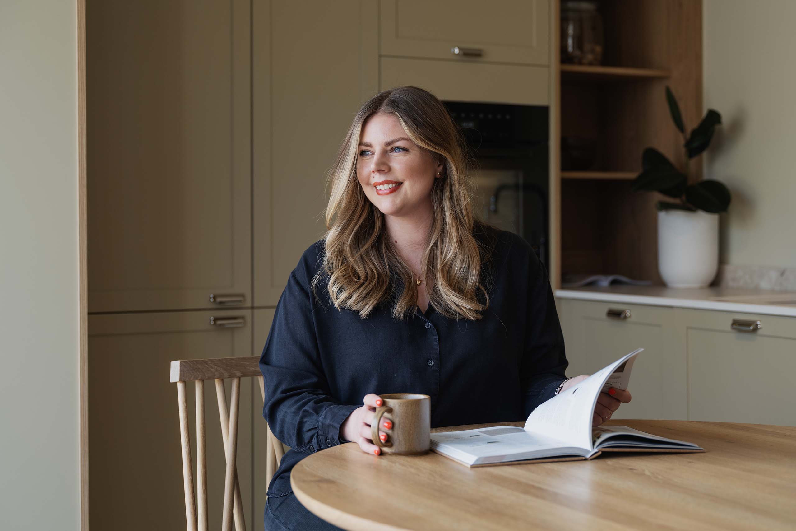 Runde, organiske former startet på badet, på møbler og stoler. Nå ser vi også runde øyer og runde fronter på kjøkkenet.